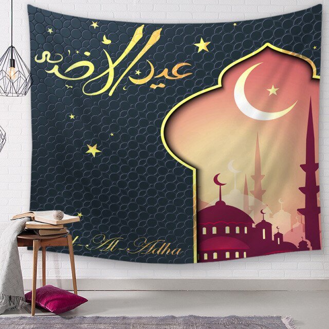 Cette jolie toile est charmante et apportera un peu de gaieté à votre intérieur. En effet, elle représente une ouverture rose, nous amenant à la Mecque à travers une arche typiquement arabe. La représentation de cette tapisserie murale et symbolique et nous invite à la religion. En y ajoutant sa belle calligraphie dorée, ce tissu ira parfaitement dans un intérieur maghrébin.