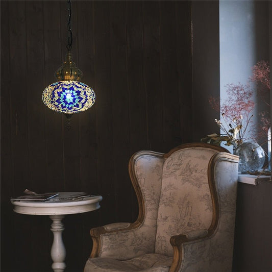 Plafonnier marocain verre bleu